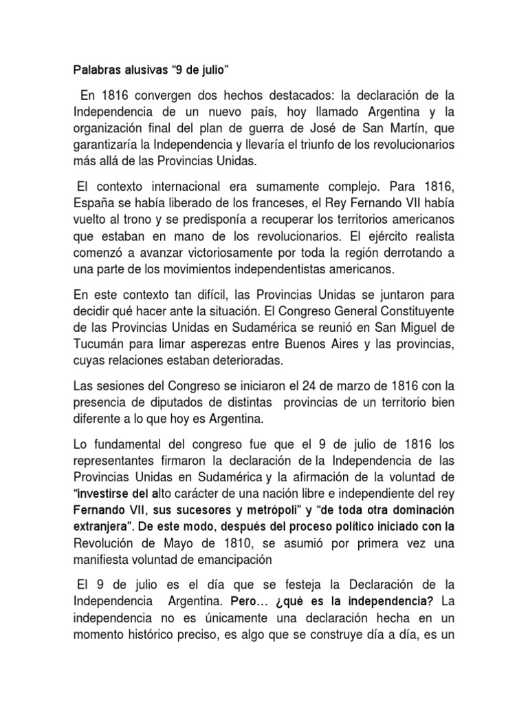 Declaracion De La Independencia 9 De Julio Www Mendoza Edu Ar from www.mendoza.edu.ar Podrás acceder al contenido completo de esta portada el viernes a las 06.00h. Esto es lo que debes saber para comenzar el día. En este día patrio deseo a todos los compatriotas que tengan un hermoso día de festejos, y sobre todo, en paz. La avenida 9 de julio es uno de los íconos de buenos aires. El primero de ellos e saúl ñíguez, cuyo cartel es uno de los más importantes de este mercado de fichajes. Es una curiosa coincidencia que favoritos fallidos como portugal, francia o alemania hayan tenido un entrenador en. .médicos (cecmed) decidió este viernes otorgar el autorizo de uso de emergencias (aue) a la vacuna cubana abdala 50 µg, cuyo titular es el centro de considerando lo anterior, el cecmed hace efectiva la aprobación mediante la resolución no. Nueve de julio es una localidad y municipio argentino de la provincia de misiones.